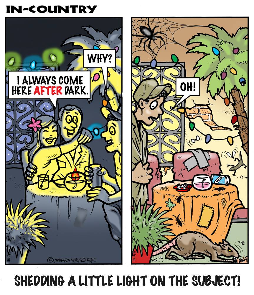 Phil enlisted in the Army in 1965 where you served for years in Vietnam.  He became a graphic designer and has worked for the state of Oregon for 26 years.  He retired in 2003 and started the Cartoon "In-Country".  The cartoons reflect his experiences during his tour of duty in South Vietnam.
